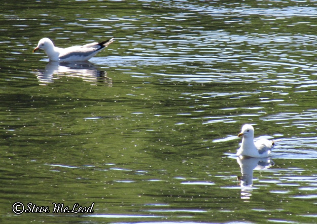 In this first pic, above, is a couple of ring-billed gulls. There was actually a dozen of them swimming around and eating dead moths that were floating on the river, that’s all those spots on the water.