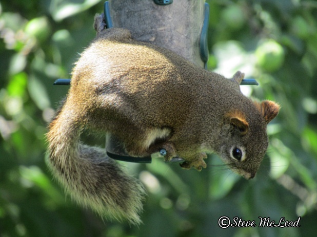 Like the above pic of the squirrel (this is Runner) on my bird feeder, what kind of normal squirrel would be doing that?