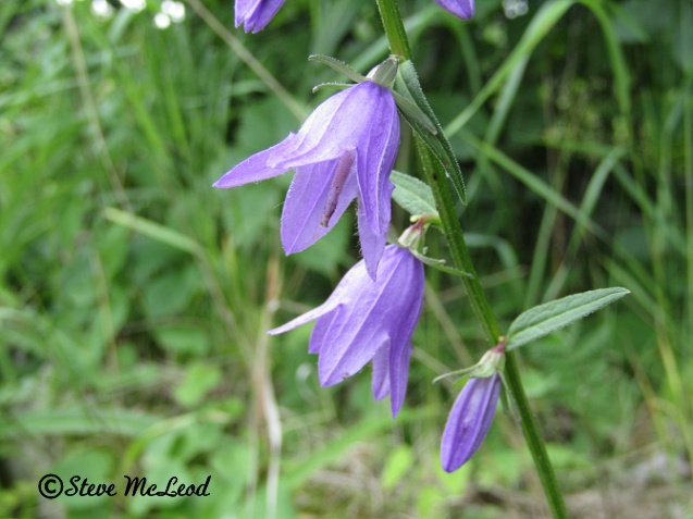 Well, our flowers today begin with the ‘creeping bellflower’ at the top. It is similar to the harebell that we saw before but this is a garden variety that often escapes and joins the wild landscape. They are bigger than the harebells and need more soil to thrive than the harebells.