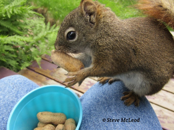 That was back in late June. He had been watching the chipmunks come up on my knee and finally he tried it too. It was so nice.
