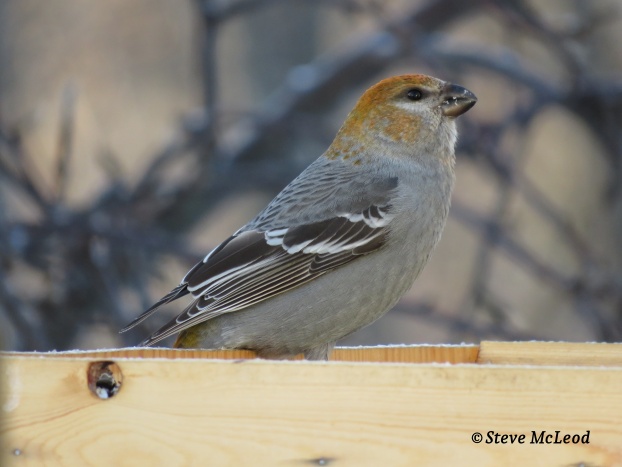 Chip. “I agree, this is your territory, he has his own and should stay there. Maybe the food isn’t so good over there.” Chip. “He said there’s no peanuts? You should tell him most squirrels don’t have peanuts, they eat pine, spruce and balsam cones, well, the seeds in them.” Chip. “Oh, you told him that.” Chip. “He’s not satisfied with that and wants peanuts? Well, maybe you could let him have some.” Loud chip. “Oh, you offered to share, but he wants them all for himself? Hmm, that’s not fair, you were here first, your mother gave you her territory, so it belongs to you.” Chip. “You’re welcome.” He takes another peanut and off he goes. Hopefully Jasper can keep fighting off that other squirrel, I would miss him. Well, thanks for coming today, I hope you all have a wonderful day and God bless!