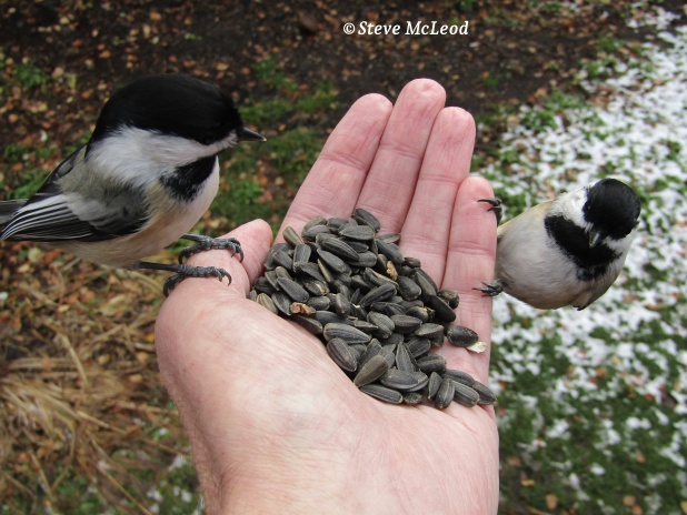 Chickadees are my favourite as well…you have the added pleasure of having them sitting are your hand ! And two of them ! ☕️☕️🙂😺☕️☕️
