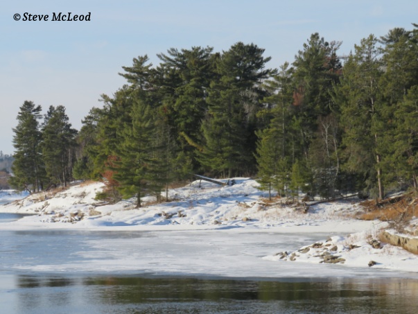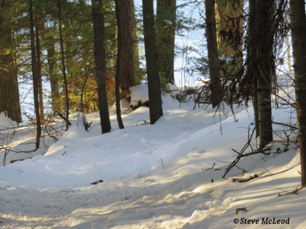 Well, here it is, January 2nd, the sky is a most brilliant blue today, and the sun is glistening off that pure white snow. It is -50F (-58C) this morning and I checked with my brother to see if he wanted to go for a walk. It took a bit, but I managed to convince him it would be a great adventure. We got together and we were dressed as warmly as we could be. There was barely a foot of snow (30cm) on the ground, so walking was easy enough. We kind of planned out a route to follow, and we actually told someone what we were doing and where we would be. So off we go heading slightly uphill across the buried granite rock with beautiful, tall pines all around us.