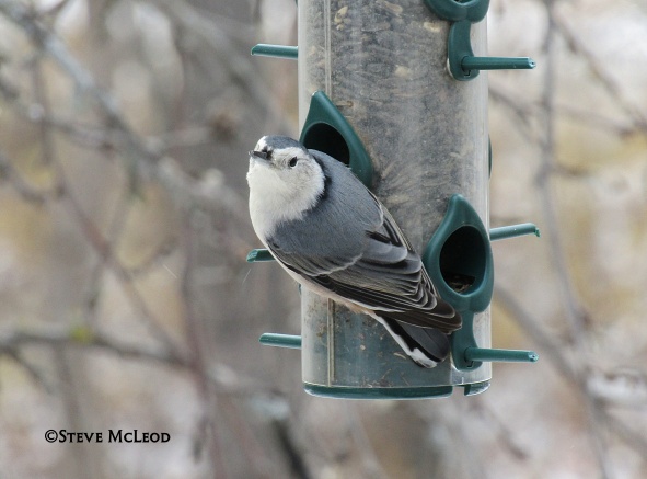 Hi everyone and welcome back! Today’s bird is the white-breasted nuthatch, we saw his cousin a while back, the red-breasted nuthatch. These birds are bigger and prefer deciduous trees, but will live in areas with mixed forest, therefore they don’t go as far north as their smaller cousins. They don’t migrate, just stay where they are year round. And they stay with the same mate as well, but will take a new mate if one dies. They usually use old woodpecker nests for their nests since they nest inside trees only and are not really able to make their own cavity in the tree. The female builds the nest and will lay 5 to 9 eggs, a lot for a little bird. They eat mainly insects and nearly all are harmful insects. In winter they also eat seeds and nuts, and they are easily attracted to bird feeders. About 85% of these birds live in the US, 10% in Mexico and only 5% in Canada. They love hanging around upside down like their cousins and will start at the top of a tree and go head first down the tree looking for insects.