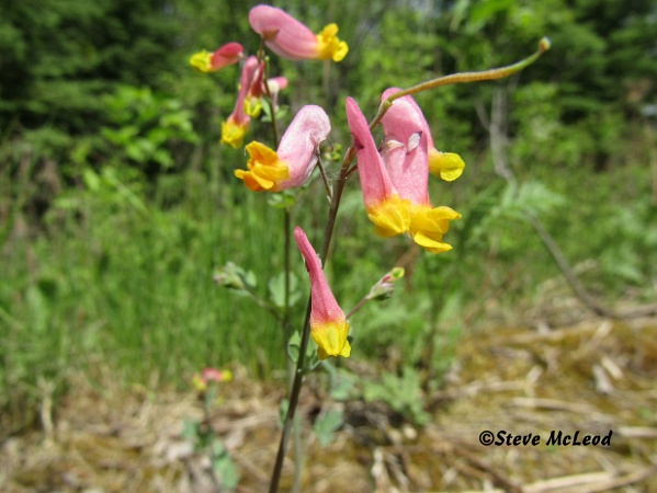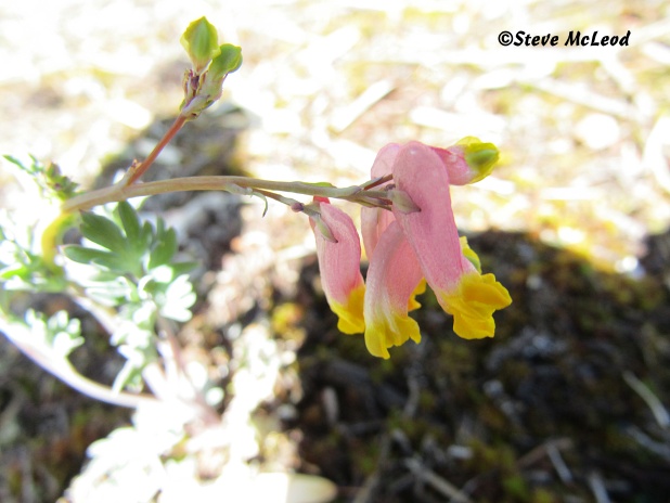 Hi everyone and welcome back to our wildflower series! Our wildflower today is the “pale corydalis”. This is a beautiful flower about an inch (2.5cm) long and the plant can grow from 12 to 24 inches (30-60cm) tall in this area. Some places apparently it can grow taller. It is found right across Canada into Alaska and down into the north and eastern US. It prefers dry, poor soil conditions and often grows out of just a crack in the rock. They are amazingly hardy wildflowers and have a long blooming period from the end of May to September in our area. Each plant will produce many flowers over the course of the summer and even though they might seemingly dry out during a prolonged dry spell, they will come back again when the rain returns. They also prefer sunny locations or places with just a little shade, they don’t like shady spots. They are often one of the earliest to return after a forest fire goes through an area.