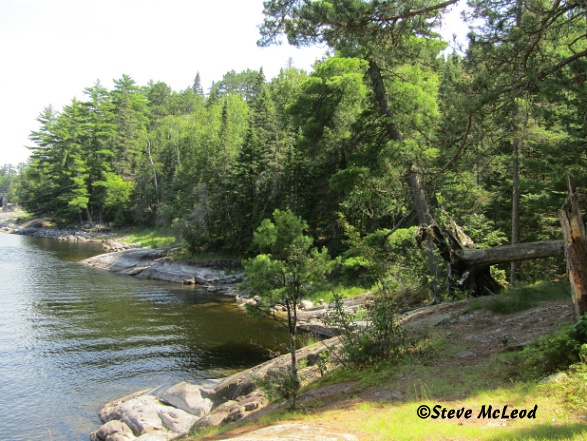 I used to walk much further than I do now, going upriver to a nice quiet spot on a granite hill overlooking the river. Not a high hill at that point, but it was so nice and quiet there with a lot of different places to sit and enjoy the solitude. My favorite spot was under a nice big pine, there was a perfect rock for sitting on, covered with a layer of pine needles which was a nice cushion. You could see the dam across the river from there and the river was quite wide along there before going through a narrow channel which kept going and opened up again to a wider part of the river at the location that I sit now on the bench. No benches at this spot, though that would certainly be nice.