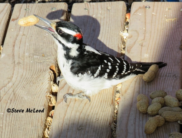 Another pic of the male hairy woodpecker with a peanut.