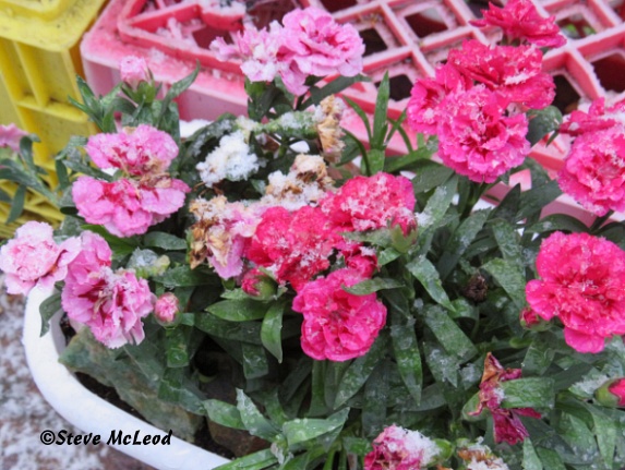 Wow, such beautiful pictures–flowers with snow on top. Hope it is not too cold for the fragile petals.