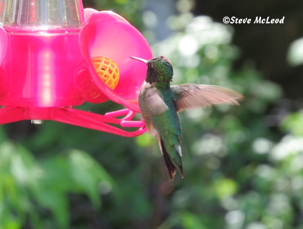 The male ruby-throated hummingbird that was having problems the other evening.