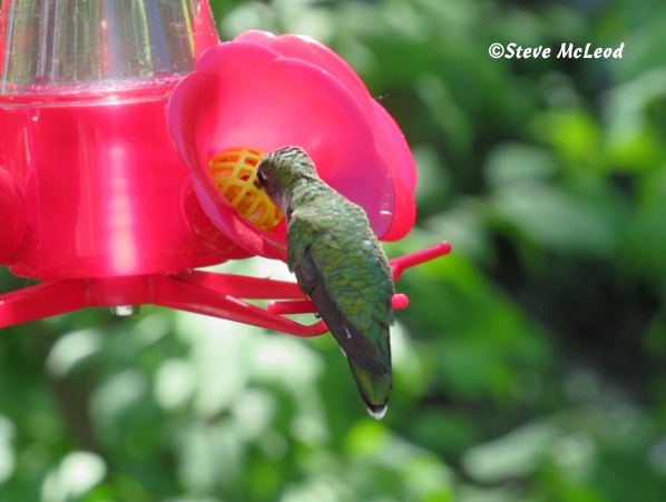 Bert was back last night. Although it could have been a different bear too, I don’t think my eyes were completely open at 2:30 this morning. The blue jays are late this morning, they just arrived, how odd. The hairy woodpecker was here earlier and got his peanut breakfast. The breakfast crowd this morning were all here and gone within about 15 minutes, then all was quiet out there until the blue jays showed up, and they are gone already too. But, the hummingbirds were busy out there, seems everything is back to normal. The top hummingbird is once again chasing the others away from the feeder. But they keep coming back.