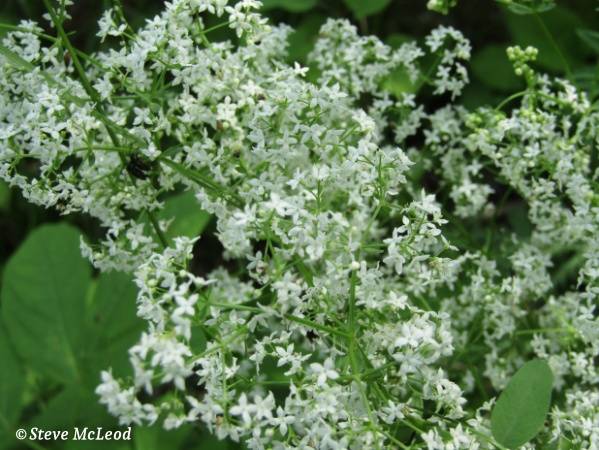 Hello everyone! Today’s wildflower is the “northern bedstraw”. These are very tiny flowers about 1/8 to 1/4 inch (3 to 6mm) across, but they form a large cluster of flowers at the top of a square stem. There are several different types of bedstraw, we have at least 2 in this area, but this one is the most common and produces the largest cluster of flowers. They bloom from June to August in open woods, woodland edges and fields in partial shade to sunny locations. It is a native wildflower and grows up to 3 feet (90cm) tall. It has long leaves in whorls of 4 along it’s stem and that is an easy way to identify this species. Bees and butterflies enjoy these wildflowers. They can be found across Canada and most of the US except from Nebraska to Louisiana, across to N. Carolina. In some parts of the northeast US it is considered a noxious weed. I hope you all have a beautiful day and God bless!