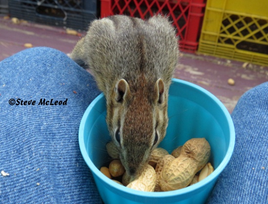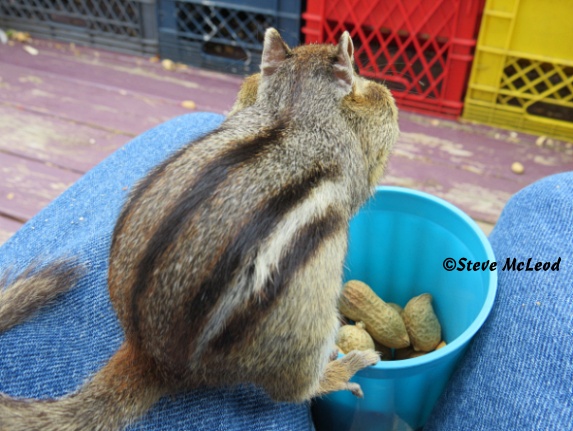 I lie flat on the floor and reach under…got it! I bring it out, covered in dust. And the name for our new little chipmunk friend is Choco! Thanks so much Rossana! All 7 chipmunks were out here this morning, plus 3 squirrels. And I have a couple pics of Scooter to show today, still haven’t managed to get Choco, but now that he has a name I will try to get a picture so you can see what he looks like. Have a wonderful day everyone and God bless!