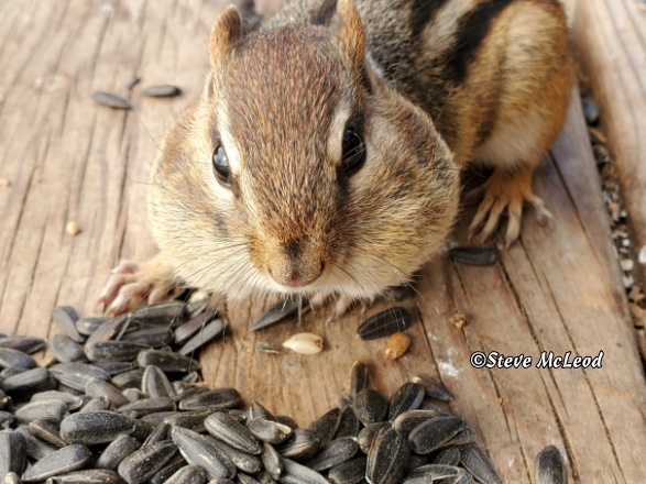 Good morning and Happy Saturday everyone! It is chilly this morning, and slightly wet, there was just a light misty rain earlier but right now the sun is trying hard to break through the clouds. It was 46F (8C) this morning and should hit a high of 59F (15C). But, this coming week is supposed to be very nice, mostly sunny and much warmer temps, so that will be nice. Maybe I can get some nice photos of our fall colors. That’s providing the forecast doesn’t change, which it often does this time of year. The chipmunks have changed a bit the last couple of days.