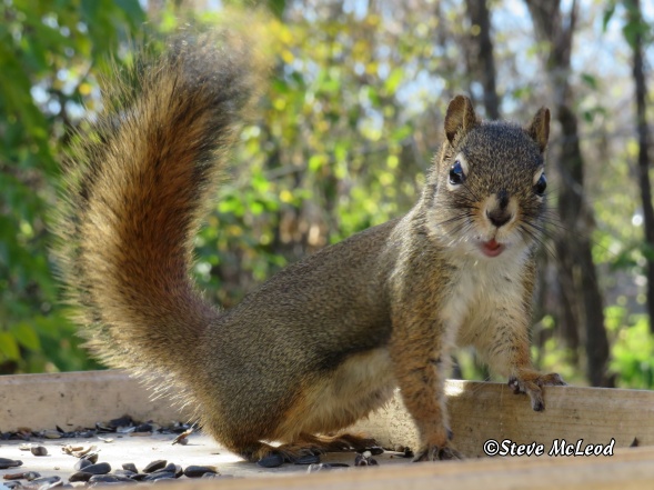 That is Jasper and Jasmine! Two of the squirrels that had been here before, and my two favorites, but like all the other squirrels they had been chased away by Slim. Now Slim is gone. Jasper had shown up a couple of times but kept being chased away by Slim who always seemed to know when Jasper came. I was surprised to see both Jasper and Jasmine come together, but obviously they must still be mates. Jasper came right up to me, Jasmine didn’t, although she did allow me to get close for some pics, as you can see.
