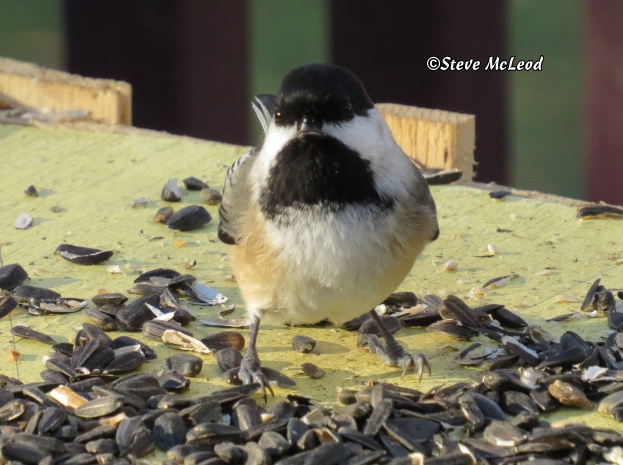 Good morning everyone! I hope your day is going well. They had forecast a major winter storm for us, but it seems that it missed us instead. We have had some snow, but not much, about 1.5 inches (3.75cm) so far, but it is very windy so that part was correct. And we are supposed to get more snow today and tonight, but right now it doesn’t look too bad, it’s barely snowing. Not that I’m complaining that the forecast was wrong, it’s perfectly fine with me. And it could change yet, we will have to wait and see. There is not much bird activity this morning. The chickadees were first and are quite busy eating. Nuthatches showed up next but they did not stay long.