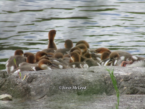 Steve and Muffin. (without using closeups, how many ducklings are in the photo at the top?)