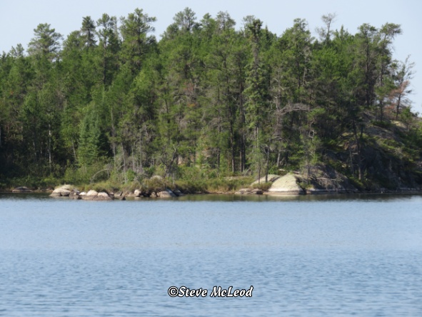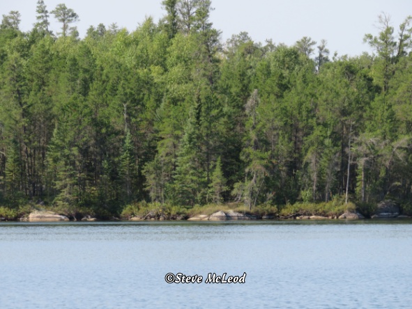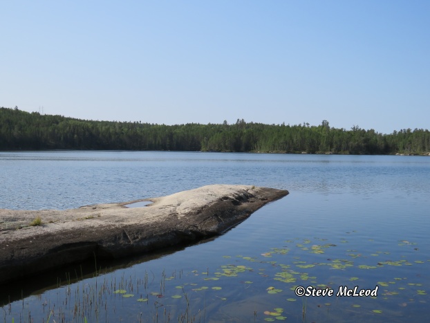 The lake is surrounded by granite rock, which is basically all we have up this way. Plus the surrounding forest is mainly jack pine and white spruce, although black spruce, birch and aspen are also around. There is always a pair of loons that nest on the lake and their calls echo the full length and breadth of the lake, and likely carry for a long distance beyond. Gulls will sometimes fly overhead and mallards will swim along the shore. The forest abounds with many species of songbirds, each one singing joyfully from their perches.