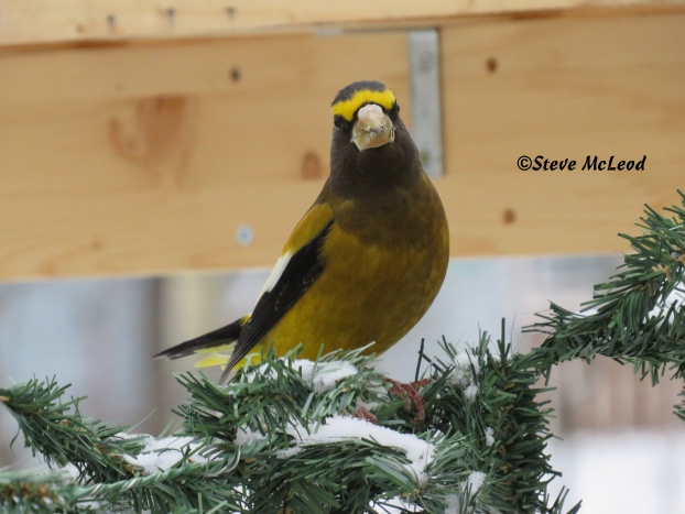 Good morning everyone! It’s a mild, but cloudy morning. However, it has that chilly feel to it. There is also some light drizzle and maybe that helps to make it feel colder than it is. Must admit, it has been an amazingly nice winter so far. Speaking of birds, it has been a bit busier than normal lately. There are 6 pine grosbeaks that have found the feeders and are coming each day now. Plus there are numerous little common redpolls coming each day as well. I have seen 29 at one time, but they are a nervous type little bird so they fly a lot, making it hard to count them.
