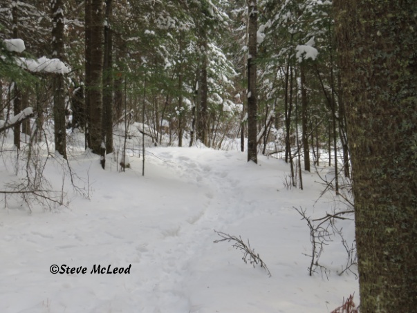 We could get a lot more snow yet, the next two months usually give us the most snow of the winter. Unless we get a very warm spring, it will take a long time for the snow to melt along the path to the river. That puts an end to my river walking for a while until the snow has melted. Last Saturday I told of my walk to the river, today we will look at the walk back. It was sunny while I was at the river, sitting on that tree stump, enjoying the peaceful view out onto the river. Watching the ducks have fun on the water.