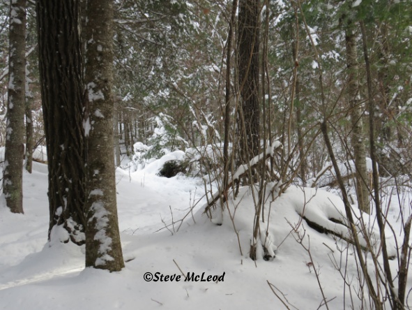 I noticed that people have been using it and the guy with the snowmobile has gone down there as well. It is just that last part where I have to break away from the main path. But I can check on it at least. Just being down there, walking on that quiet path is so nice and relaxing. And I am sure that Scramble is waiting for more peanuts. I will have to bring a larger bunch for him on my next walk, I did not have many with me the last time. It is nice to sit in his dark area of the forest and listen to the quietness. So often there is not a sound of any kind.