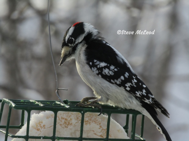 Male downy woodpecker.