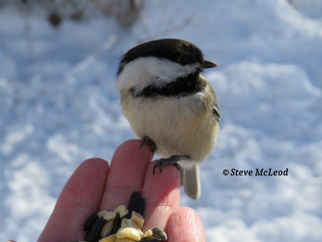 It has been snowing pretty near all day…warnings have been given for those who are on the highways…low visibility with blowing snow…❄️❄️💨 those pics with the birds eating from your hand are so sweet ! 🙂😻