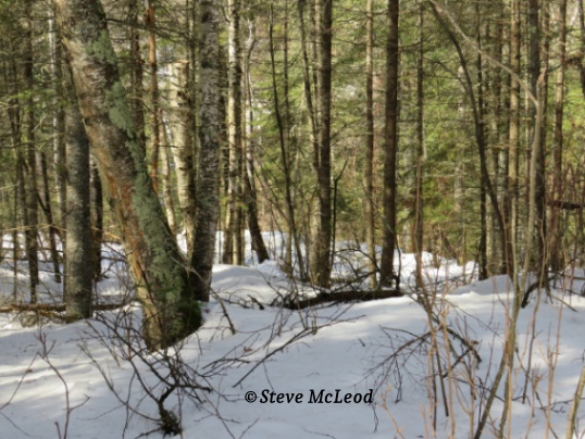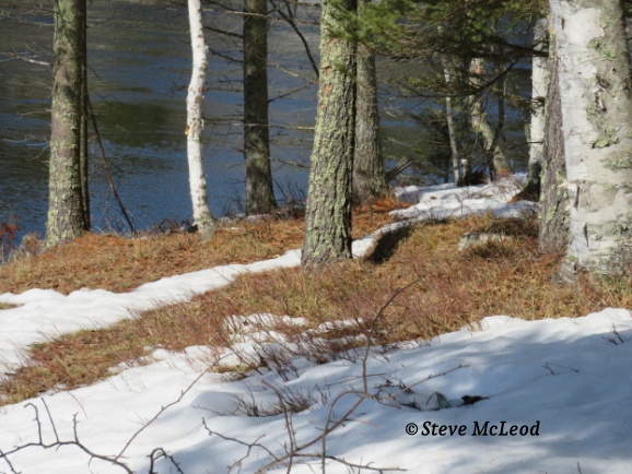 There were chickadees and nuthatches along the whole path right to the river, and back. Plus a few bald eagles once I got to the river. I did not see any ducks, which was rather odd. But, there was one Herring gull flying around and calling a bit. Likely it was a scout checking things out. That happens with some of our early returning migrants. But the snow has melted a lot along the path. It averaged between 12 and 18 inches (30 to 45cm) deep. Much better than the 3 to 4 feet deep snow earlier.