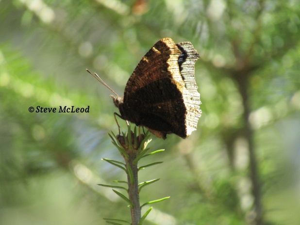 Then there is the little things of nature that are so enjoyable, like this little mourning cloak butterfly above, sitting on top of a young balsam fir tree. They are always our first butterflies of the season having spent the winter hibernating in logs, trees or wherever they can find a sheltered spot.