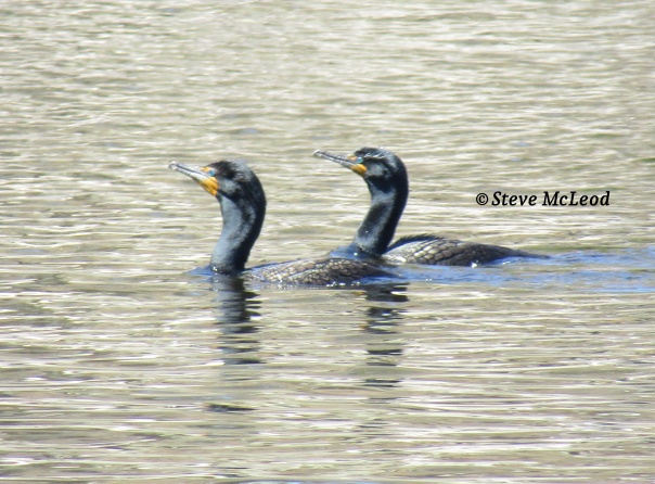 Another oddity are these double-crested cormorants above, even though they may not appear too odd at first look. But they have this habit of swimming with their beaks pointed upward and often swim with only their head and neck out of water. Or they will swim with their wings outstretched drying them as they swim along.