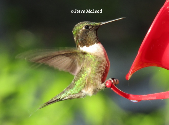 And in keeping with little things, we have the ruby-throated hummingbird pictured above. His ruby red throat often looks black until the sun hits it transforming it into a bright red color. They are remarkable little birds and a joy to have around.