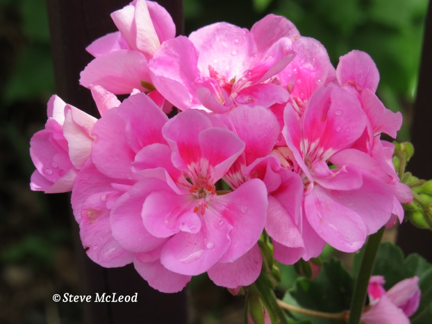 Pink freckles geranium after a summer shower. I am looking forward to flowers blooming again!