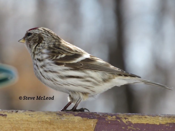 Not much bird activity again. There are quite a few redpolls again this morning, around 50 of them, about double what there was around here yesterday. And a few chickadees, 2 red-breasted nuthatches, 2 white-breasted nuthatches, 2 blue jays and now my 2 herring gulls who have already been here for their breakfast and have now gone out flying around again. My other gulls have not shown up yet though. The evening grosbeaks have not been here this morning and only 6 showed up briefly yesterday.