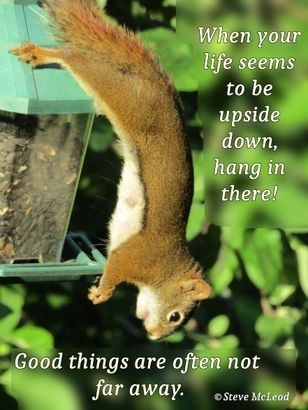1. Steve, love your photo of Mama Red and your commentary. Very true we can learn from squirrels. Not giving up and using a unique method to get what we need is important.