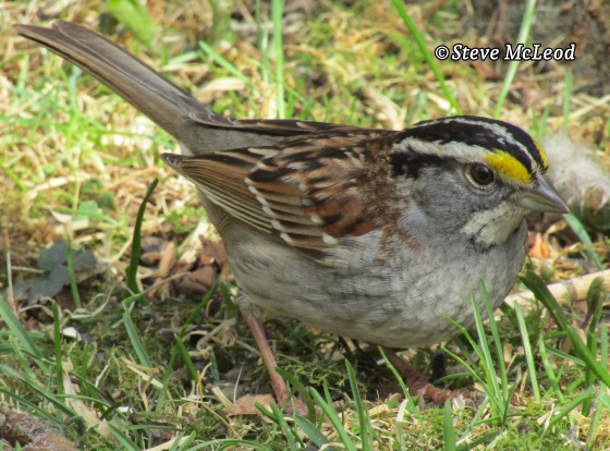 Another white-throated sparrow in a different color variation. It was once thought these were females, but males and females can be found in both color variations.