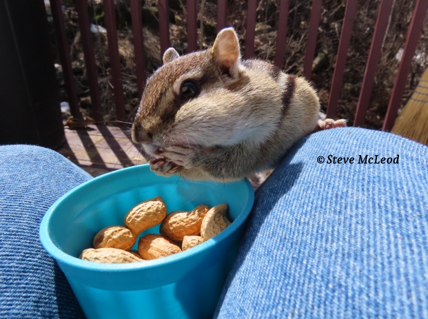 Some people do not like them around because they can be a bit bossy at times. But mine get along quite well with the other birds and the evening grosbeaks have even learned to fight back and chase the blue jays off the feeder. Speaking of chasing. Chase, the squirrel, is learning to get along with the chipmunks just like Jasper. Skamper and Choco will even chase Chase. So now they mostly ignore each other and concentrate on getting peanuts.