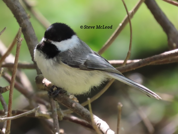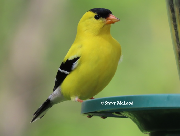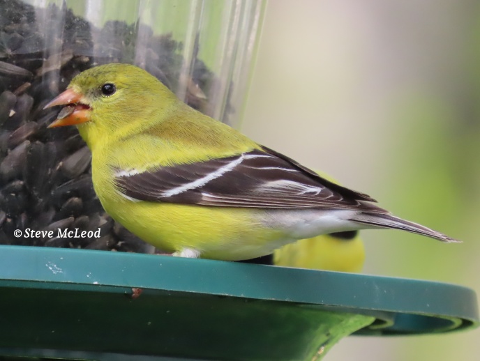 That is one of my favorite summer bird songs. Look up there, 18 of our local Canada geese are flying overhead, probably going down to the river. With warmer, drier weather moving in starting on Monday, I hope to get more walks to the river. There is a pair of American goldfinches at the feeder now, there are 2 pairs this year. Usually, other years, there are 10 or more pairs around this time of year. Hmm, the wind is getting stronger, it is supposed to get calm this morning.