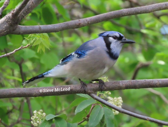 Again, it is usually full of bees, but I have not seen any around it this year. Perhaps the long winter and very cold spring has hurt the bee population this year. That would be bad for the flowers. I have not seen any of our flower flies yet this year either. The sky is such a rich blue this morning, reminds me of the blue on our blue jays. There are at least 4 families of blue jays around now. Baxter, Betty and their 3 young ones are here nearly all day, the others just come and go throughout the day.
