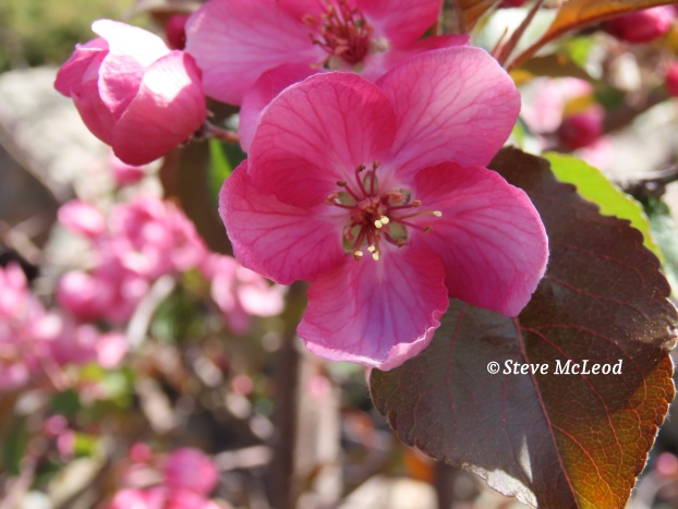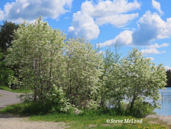 But he was not making any noise. Not a nice way to start the day. At least I do not think so anyway. On a nicer note, yesterday my friend and I took a drive out of town for the morning and stopped at a few small lakes along the highway. It was really quite beautiful, and peaceful. Nice not having to worry about bears for a while. And there were a lot of wildflowers, and not so wild flowers, in bloom. I am showing some apple and cherry trees that we found, plus some pincherry bushes as well.