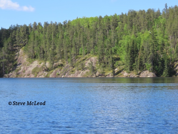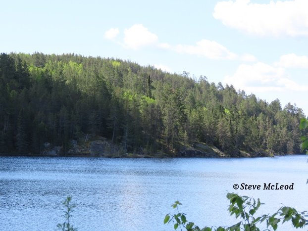Some people were on the lake fishing while we were there. This is a good lake for fishing and this part of the lake is just a small bay really. The lake is quite large with numerous islands. Usually there are loons in this bay but I did not see or hear any that day. That was too bad, I was hoping to get some loon photos. Perhaps another time. But sitting beside the lake certainly is tranquil, a true place of solitude.