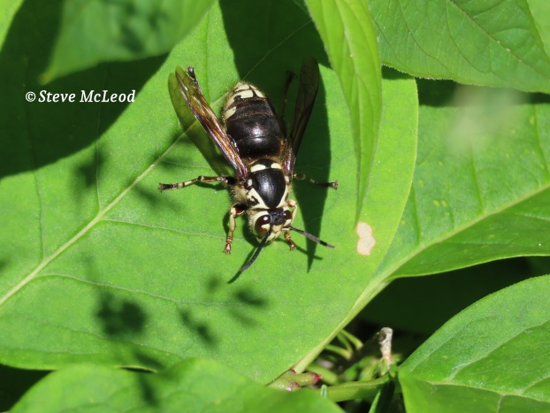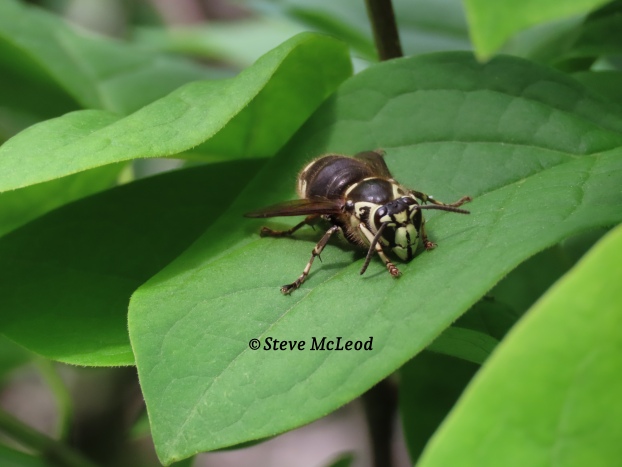 Hi everyone! Well, yesterday I told about my close encounter with a Bald-faced Hornet. Today I am showing pictures of this fascinating creature. This hornet is actually a type of wasp, related more to the yellowjackets. These hornets build a paper nest, usually high in a tree and their colonies can have thousands of individual workers.