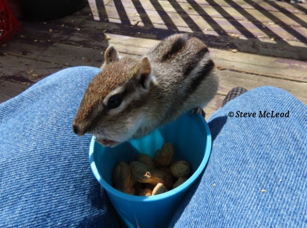Then Skitter finally got his peanuts and Choco came back, but Skitter is tougher than Choco so the chase was on again, even with two peanuts in his mouth. But Choco finally came back and I put some sunflower seeds out for him. Since no one in town has peanuts right now I am supplementing the peanuts with sunflower seeds to make them last longer. The chipmunks and squirrels are happy with this arrangement too. Sounds like they are having “fun” out there again! Thank you all for joining us today, have a great Friday and God bless!