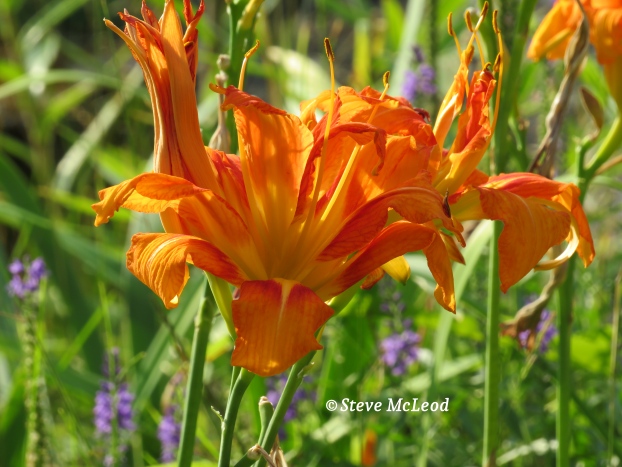 Sitting out on the deck as a white admiral butterfly comes by and lands on a leaf. So absolutely beautiful. Seeing the sun shining on the bright orange daylilies making them shine. Looking for the wonderful wildflowers all along the path to the river. Those are more real country pleasures. Sitting by the river watching the water flow quickly past.