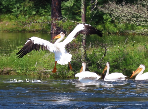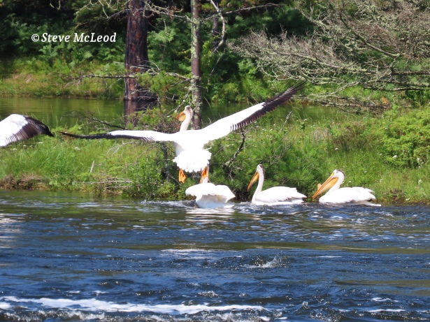 The water level was so high it covered the path with nearly 2 feet of fast flowing water. But it was still nice down there, especially while the pelicans were here. But they left around mid August. I love watching those pelicans, and taking pictures of them, as you can see by the pics today. I could easily spend all day down there photographing those pelicans. They stayed mostly on the other side of the river on a granite outcrop along the shore.
