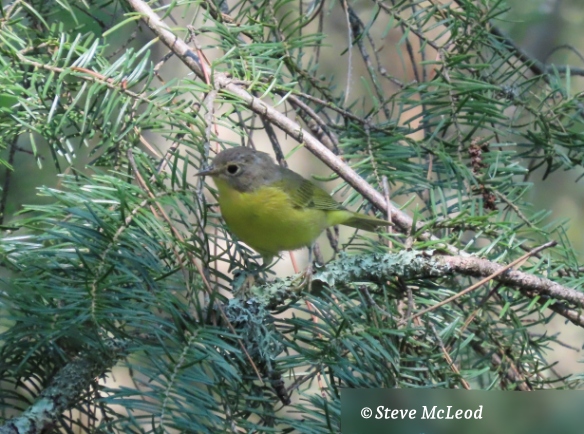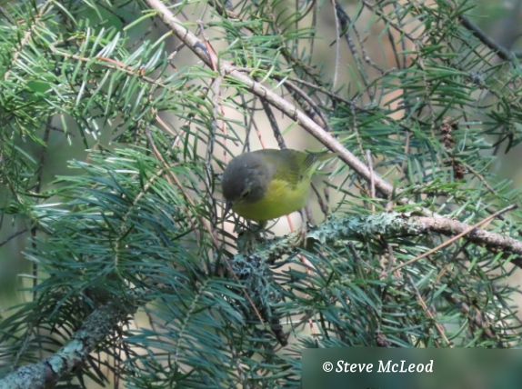 Another look at him, he is in a balsam fir tree. This little bird is about 40 feet away.