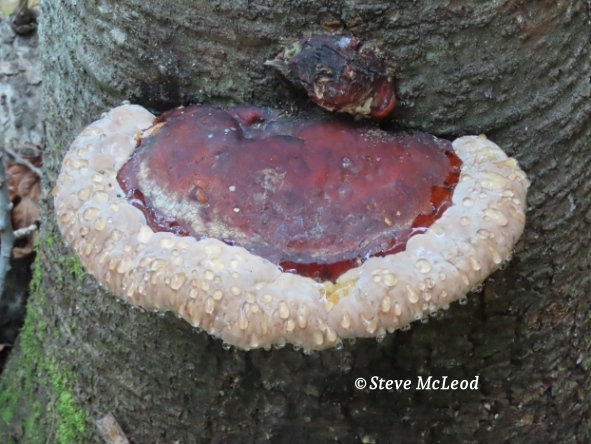 Hi everyone! Well, here we, hopefully, begin a new series about our wild mushrooms. Many of our mushrooms are found over much of eastern N. America and even in Europe and Asia. This one today is called “Resinous Polypore”.