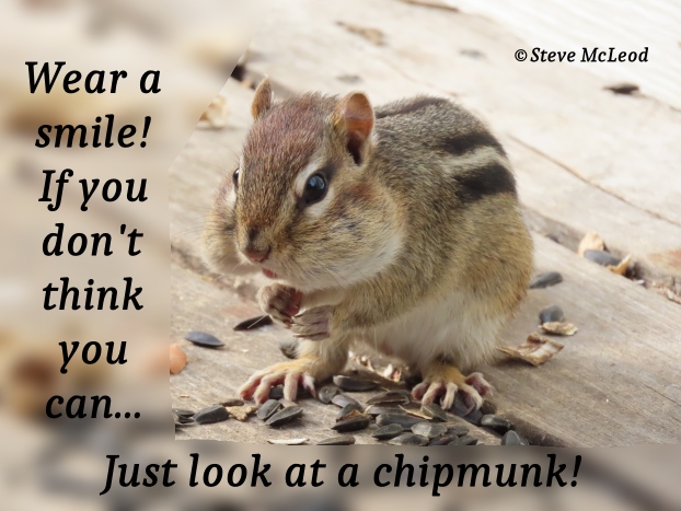 Hi everyone! We can always wear our smiles, but sometimes it can be hard. We should still smile anyway as it will make us feel better. And like Skitter the chipmunk says, just look at a chipmunk! It is hard not to smile when looking at these cute little critters. Have a beautiful Monday everyone and God bless!