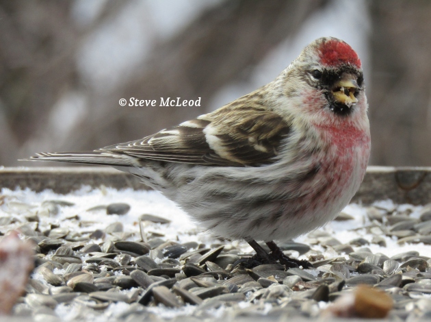 I still think he sleeps somewhere fairly close, and when he sees the light come on, then he comes over for his breakfast. At least that is my theory. It happens nearly all the time. The evening grosbeaks were here earlier this morning, but they only stayed a few minutes and left. They have not been back since. Very strange birds this winter. It is just not normal for them to do that.