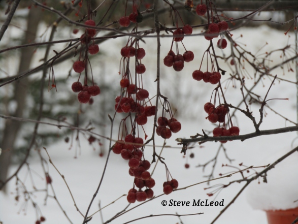 Good morning everyone and Happy Sunday! Another cold morning here, but even in the cold, beauty can still be found. Like these frozen cherries hanging in clusters on the neighbor’s tree. They are a perfect and very nourishing food for the birds during a cold winter. And they do look beautiful hanging out there from their branches against a background of white snow. I hope you will agree. Have a sunny Sunday everyone and God bless!