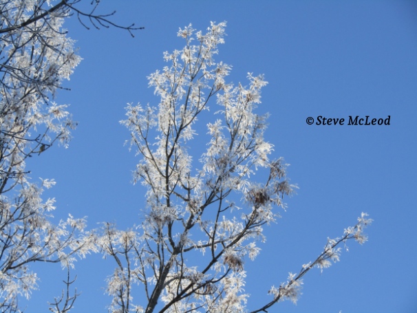 Good morning everyone! Here we are with another frozen in time beauty to enjoy. These frosty trees are definitely beautiful against that bright blue sky. Sometimes things just line up ever so nicely. But unfortunately it never does last very long. The sun, even when it is cold, still knocks that frost off the trees rather quickly. Have a wonderful Sunday everyone and God bless!