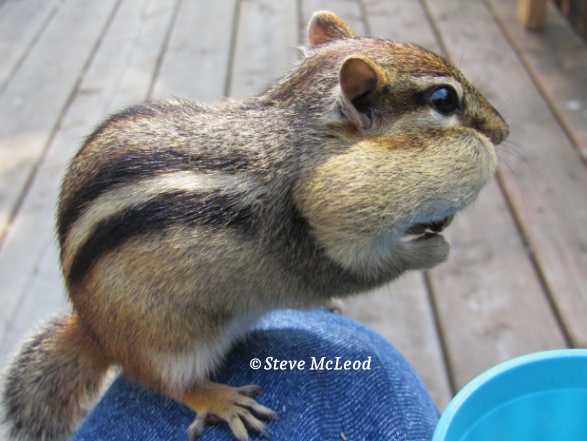 There are many of them to think about too. Like chipmunks, those cute little rodents that crawl all over me during the summer, looking for their peanuts. Standing on their hind legs to look at me. They have to be one of the cutest animals around. Then there are squirrels, a little noisier than chipmunks, and much more bossy, but still cute little critters which can also be quite friendly. And, of course, squirrels are here year round, while chipmunks stay in their little homes all winter.